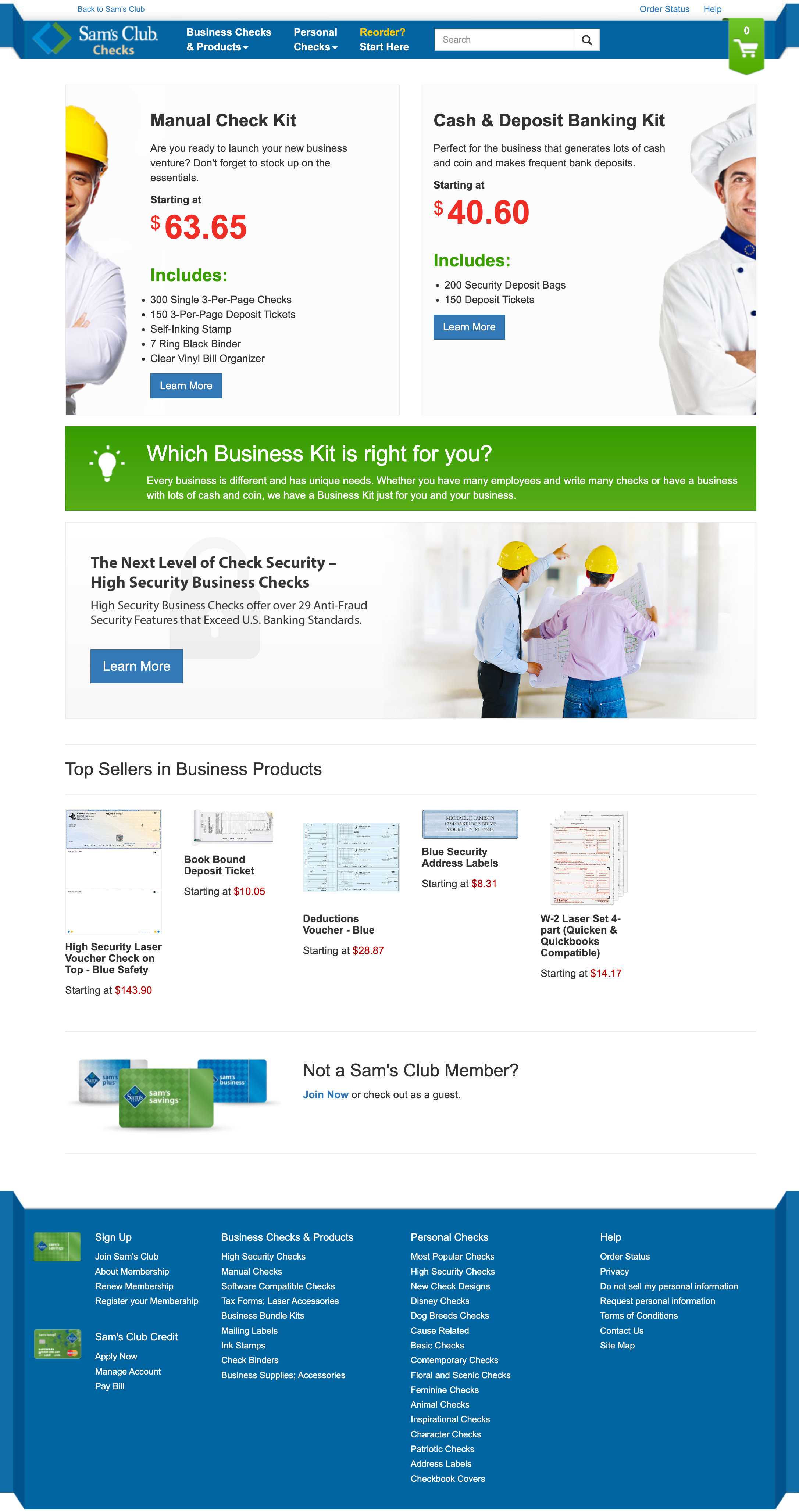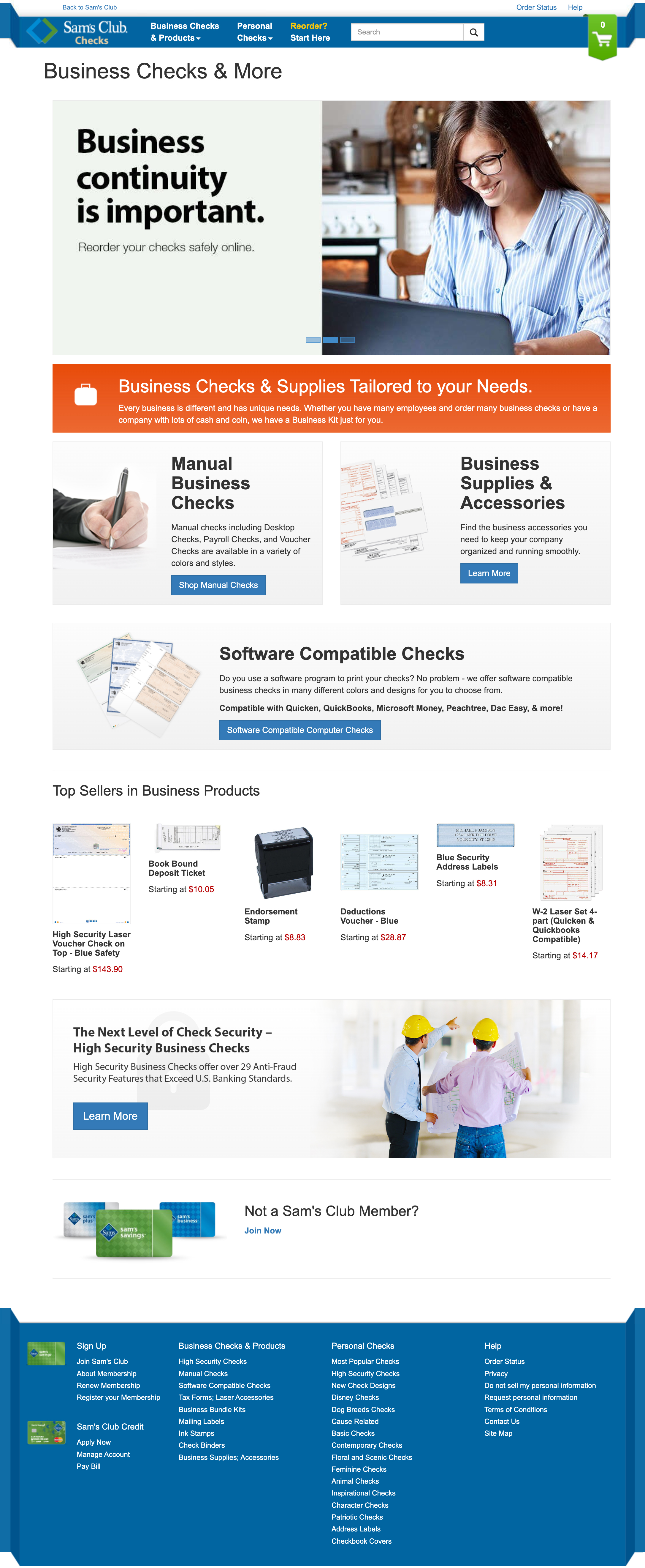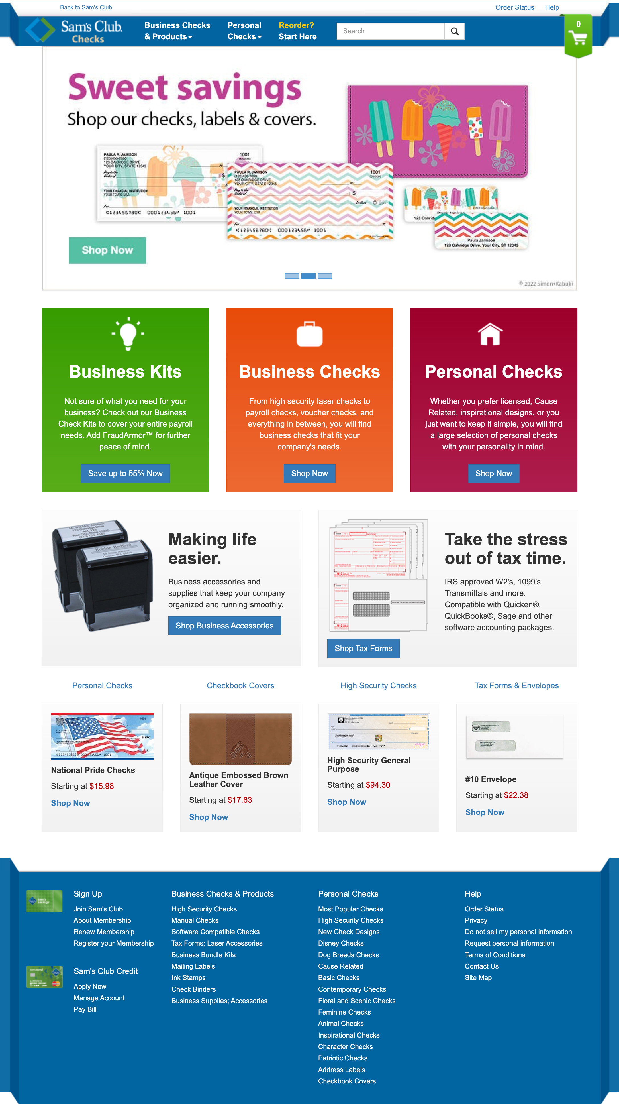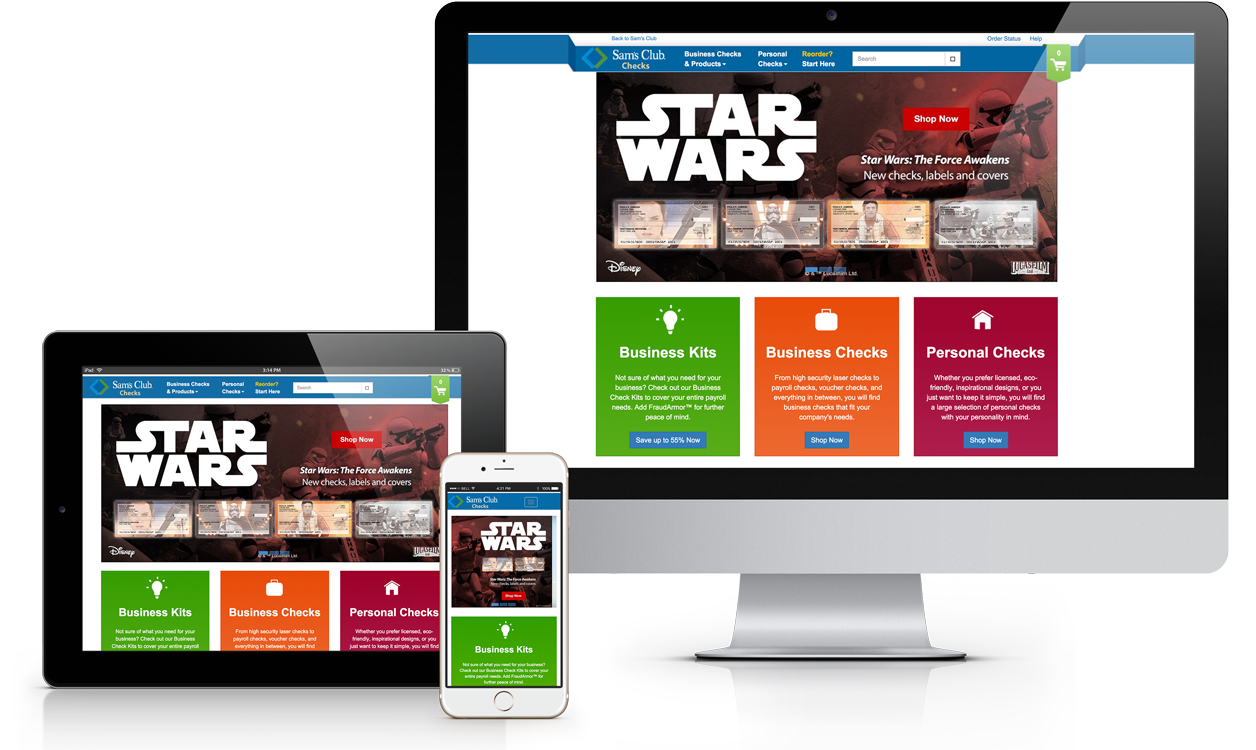 Complete redesign of private label website for client Sam’s Club Checks. Efforts included design system update to match client's re-brand, a responsive design, and a focus on new business products.